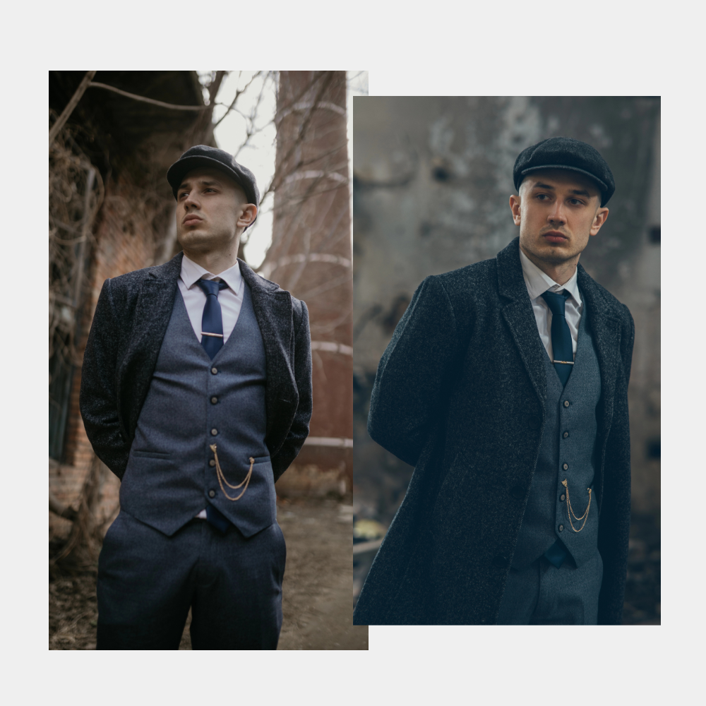 Nos pièces sont pensées pour être portées aussi bien au quotidien que lors d’événements. Un costume 3 pièces peut se décomposer facilement : le pantalon ou le gilet se porte très bien séparément, pour un style affirmé mais subtil. C’est toute la force du style Peaky Blinders : imposant mais adaptable.